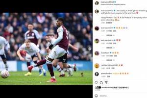 体育资讯3月31日讯 在足总杯维拉3-0大胜普雷斯顿的比赛中,拉什福德打进维拉生涯首球,随后完成梅开二度。 拉什福德赛后也在个人社媒晒出本场照片,配文写道:“非常激动终于收获在维拉首粒进球,并且帮助球队晋级半决赛。祝大家母亲节&开斋节快乐。”