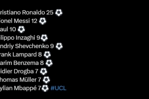 体育资讯4月8日讯 本赛季欧冠1/4决赛即将打响,有媒体统计了在欧冠历史上1/4决赛的球员进球数。